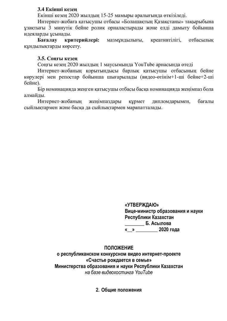 ПОЛОЖЕНИЕ о республиканском конкурсном видео интернет-проекте «Счастье рождается в семье»